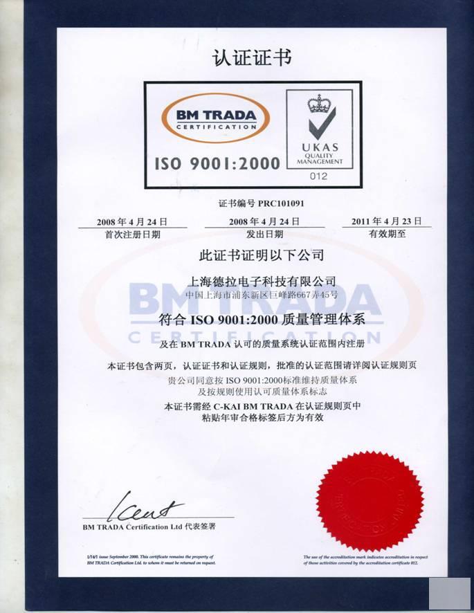 本公司獲得ISO 9001:2000質量管理體系資格認證